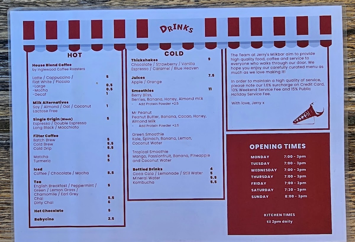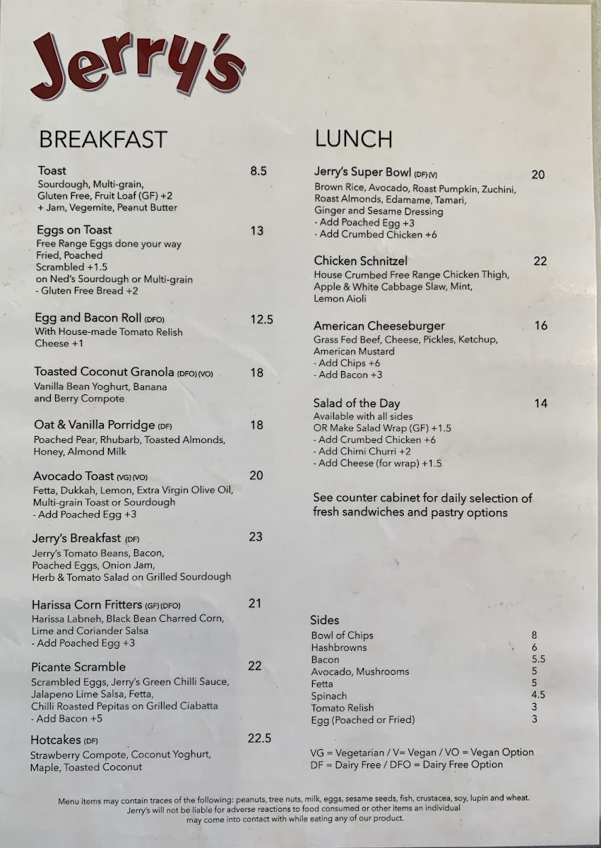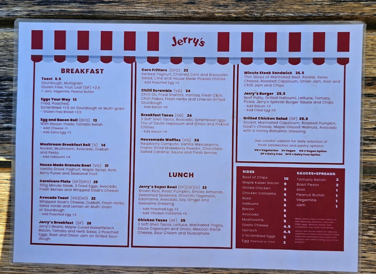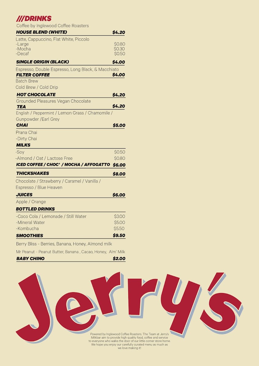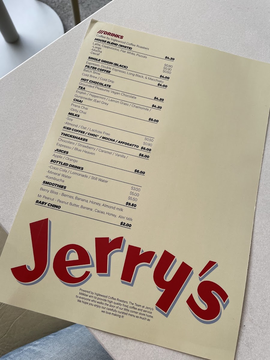 Overall, Jerrys Milkbar presents a well-rounded menu that blends comfort food with fresh, vibrant flavors. Whether you're stopping by for breakfast, lunch, or a refreshing drink, there's something on the menu to satisfy every craving.