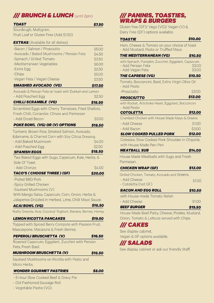 Jerrys Milkbar in Elwood, VIC offers a vibrant and diverse menu that caters to a variety of tastes and preferences, making it a great spot for breakfast, lunch, or a quick snack. For breakfast, the options are simple yet satisfying, with favorites like Toast and Eggs Your Way. If you're in the mood for something heartier, the Egg and Bacon Roll and the Mushroom Breakfast Roll are excellent choices. For a lighter and more nutritious option, the House Made Granola Bowl is a refreshing start to the day.